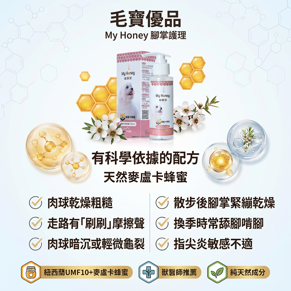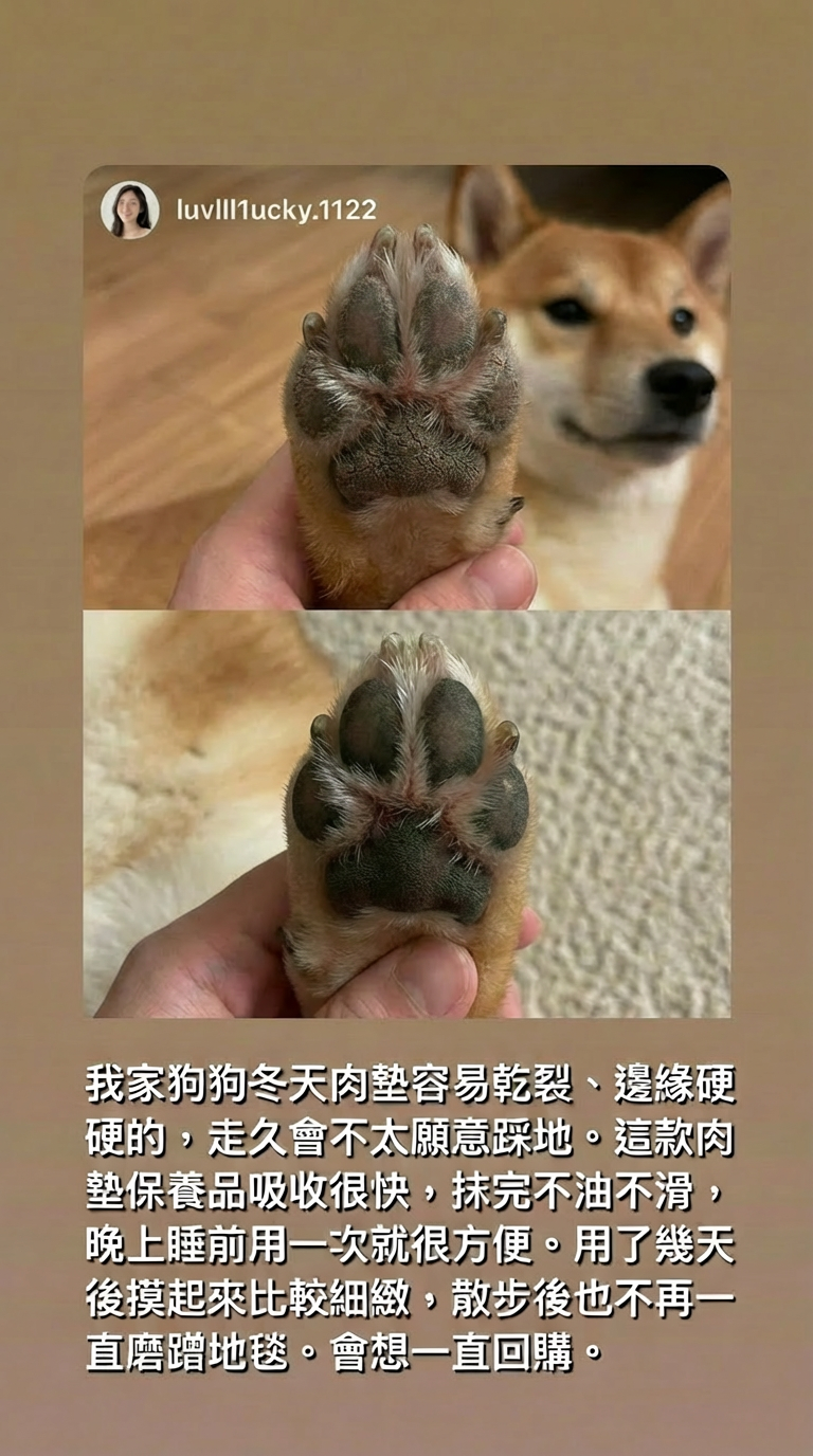 腳掌是毛孩每天最常接觸地面的地方,乾燥與敏感都會累積在日常裡。